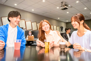 コーヒー、ビール飲み放題の本社カフェバースペース。ダーツも完備しています。各支店も検討中