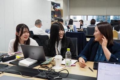取締役と新入社員2名の休憩中の様子。