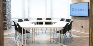 会社のロゴマークをモチーフにしたおしゃれな会議室