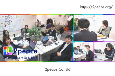 ■オカンのようにお節介で温かく■ 仕事は相手があって初めて成り立つもの。 自分に目を向けるのではなく、他人を思いやれる人間であり続けます。 ▍人財の力で企業の発展に役立ち、豊かで明るい社会づくりに貢献する。 私たちは「人間力」にフォーカスして、人財の皆さんにしっかりと指導、教育を行っています。 人財には2peaceで働くメンバーだけでなく、これから仲間になる方、2peaceから羽ばたいていく方すべてを含みます。スキル・技術の大切さも理解しつつ、何よりも人間性のある人財を輩出してまいります。 ■起業から今につながるストーリー■ 当社代表が社会人人生を歩み始めた当時、自分のために勉強していた学生時代とは大きく変わり、社会では相手の満足度がそのまま自分に跳ね返ってくる感覚を知ることになります。セールスでも自分が売りたいものを売るのではなく、まずは自分を知ってもらい、自分のファンになってもらうことの大切さに気付きました。しばらくして体調を崩し、働くことの大変さ、尊さ、難しさを実感します。 世の中には自分と同じような思いを抱く人がいるはず。 そうした人たちの力になりたい。 自分だからできることがある。 そうは言っても企業に人材を紹介するだけでは、私がやる意味がないだろう。 ならば――。と社会貢献できる事業を結び付けて現在の2peaceを立ち上げます。 ■解決したい問題■ いじめ・不登校など学校にまつわる問題について行政や企業のアプローチが行われていますが、認知件数・生徒数はそれぞれ増加しています。これらの問題には学生時代の過ごし方が深く関わっていると私たちは考えました。実際の活動として当社事業の一環で学校を回って研修を実施し、不登校の状態にいた生徒が通学・登校できるようになったケースもあります。 この取り組みを就職活動につなげれば、学生本人が社会に出て誰かの役に立てるようになります。地方で行えば地域に活力が生まれ、いずれ過疎化が解消されていくはずです。 2peaceは組織体制を整えつつ事業会社を立ち上げ、雇用を賄える環境をつくり、ゆくゆくは地方での人材育成を開始。リモートでも働ける環境をつくっていく所存です。