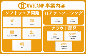 アウルキャンプは、IT技術の提供でクライアント企業のビジネス成功を支援しています。 ITエンジニアやデザイナーのメンバーと共に、Web制作、アプリ開発、インフラなど幅広い領域で、お客様に最も最適なソリューションをご提案します。 ▼具体的なサービス ・Java/PHP開発 ・Android/Swift/Flutter開発 ・AWS構築・運用代行 ・インフラ自動化/DevOps ・デザイン制作(Webサイト/パンフレット等) ・IT技術顧問サービス 官公庁・大企業の基幹システム〜最新のクラウドまでチームで問題に取り組み、お客様の笑顔と「ありがとう」をいただけるよう日々奮闘しています!