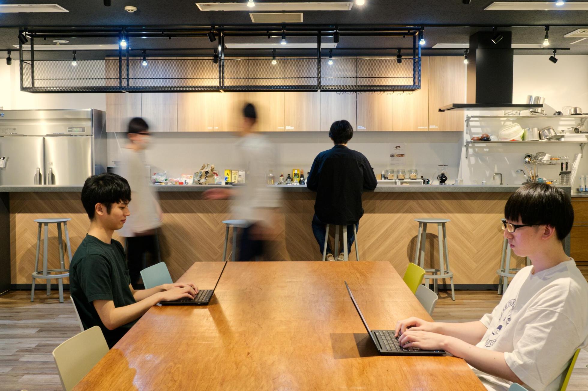 オフィスB1は、広々としたコミュニケーションスペース。キッチンを囲んで自然と会話が生まれ、研修や社内イベントの場としても活用。ビリヤードや卓球台もあり、サークル活動も行われています。