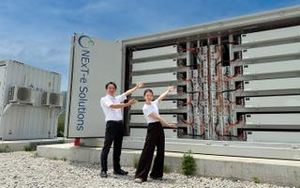 那須塩原市に設置している系統用蓄電システム。自社技術を搭載し、使用済みEVバッテリーをリユースしたモデルです。