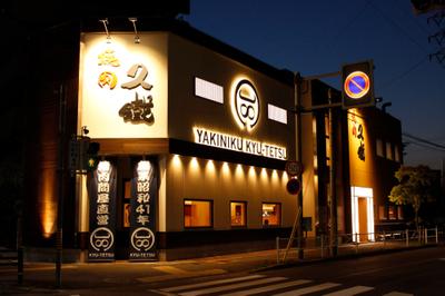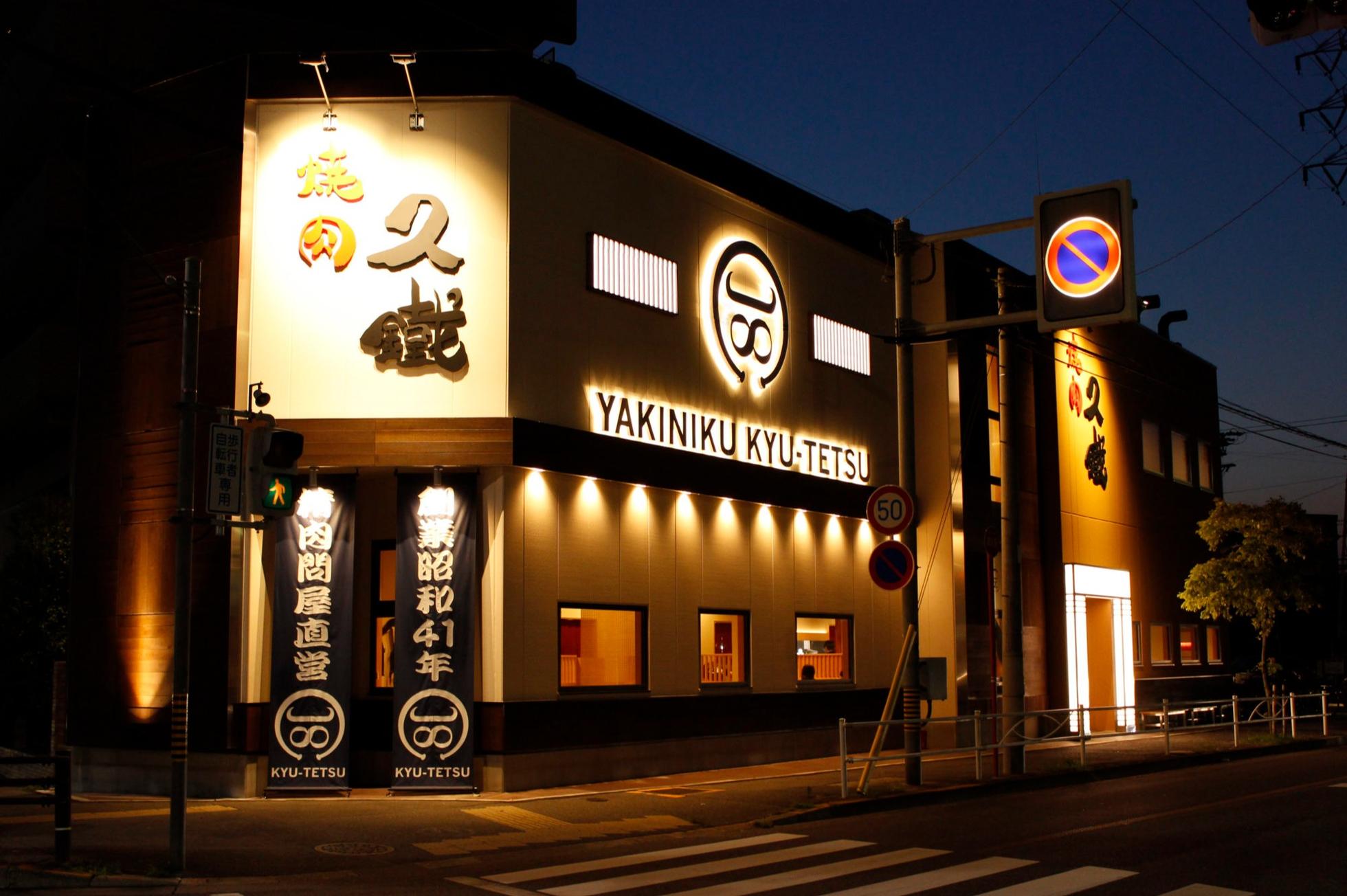これからの50年も愛されるお店に....!50年前に建てられた建物を立て直し、更にお客様に満足頂ける焼き肉店をつくりたいとご依頼を頂きました。スタッフのオペレーションがしやすく、お客様が居心地よくしたいとのご要望を受けプランを進行しました。前店舗から入口の位置を変えることで、問題がクリアになりました。印象的でスタイリッシュな外観をご要望だったので、木の市松張りと大きなチャンネルサインを採用。建物自体がサインとなり圧倒的な存在感を出しています。
