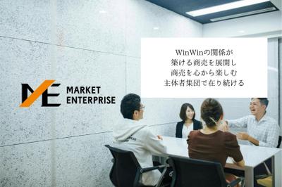 「ひとりひとりが主体者で在り続けること」 私たちマーケットエンタープライズグループには「主体者集団」という企業文化が根付いています。 現在はネット型リユース事業を中核とし、メディア事業、プラットフォーム事業、通信事業など「最適化商社(=賢い消費を望む消費者に様々な選択肢を提供できる会社)」を目指して事業の多角化を推進しています。 グループ経営体制への本格的な移行も進んでおり、 ・株式会社マーケットエンタープライズ ・株式会社MEモバイル ・株式会社MEトレーディング ・株式会社UMM ・MARKETENTERPRISE VIETNAM CO., LTD の5社でマーケットエンタープライズグループを形成し、高い成長力を維持する企業グループとして、これからも主体性を持った多様な仲間を強く求めています。 <受賞実績> ◎リンクアンドモチベーション モチベーションチームアワード(2020年度) ◎ヤフオク!Best Store Awards総合賞1位受賞(2017年度、2018年度、2019年度) ◎Yahoo!オークション Best Store Awards総合賞1位受賞(2024年度) ◎Japan Venture Awards2015 中小機構理事長賞 ◎日本流通産業新聞社主催 第2回日本ネット経済新聞賞「急成長賞」受賞 ◎新日本有限責任監査法人発表「Job Creation 2015」12位受賞 ◎EY Entrepreneur Of The Year 2013 Japan ◎有限責任監査法人トーマツ発表 第14回「日本テクノロジーFast50」29位受賞 ◎有限責任監査法人トーマツ発表 第13回「日本テクノロジーFast50」13位受賞 ◎デロイト トウシュ トーマツ リミテッド発表 第15回 「アジア太平洋地域テクノロジーFast 500」455位受賞 ◎2013年、2012年、2011年、2010年、ベストベンチャー100受賞 ◎その他受賞実績多数
