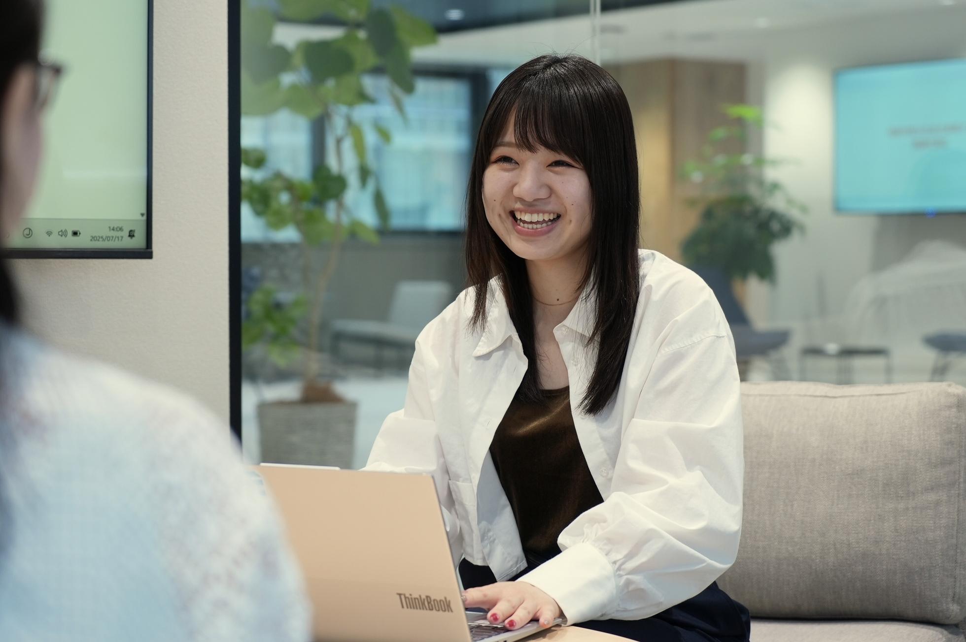 新卒2年目、採用や広報活動を行っています。 入社前からインターンを始めました、日々成長し、様々な業務に関われる毎日が楽しいです。