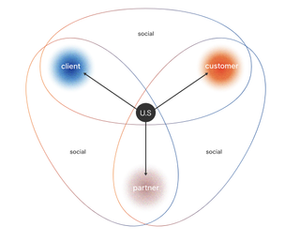 クラアント、カスタマー、パートナー、社会の三方、四方が同時に幸せになる世界を目指しています