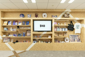 2023年3月に移転した新オフィスのエントランス。当社グループで運営しているIPのグッズがディスプレイされている。