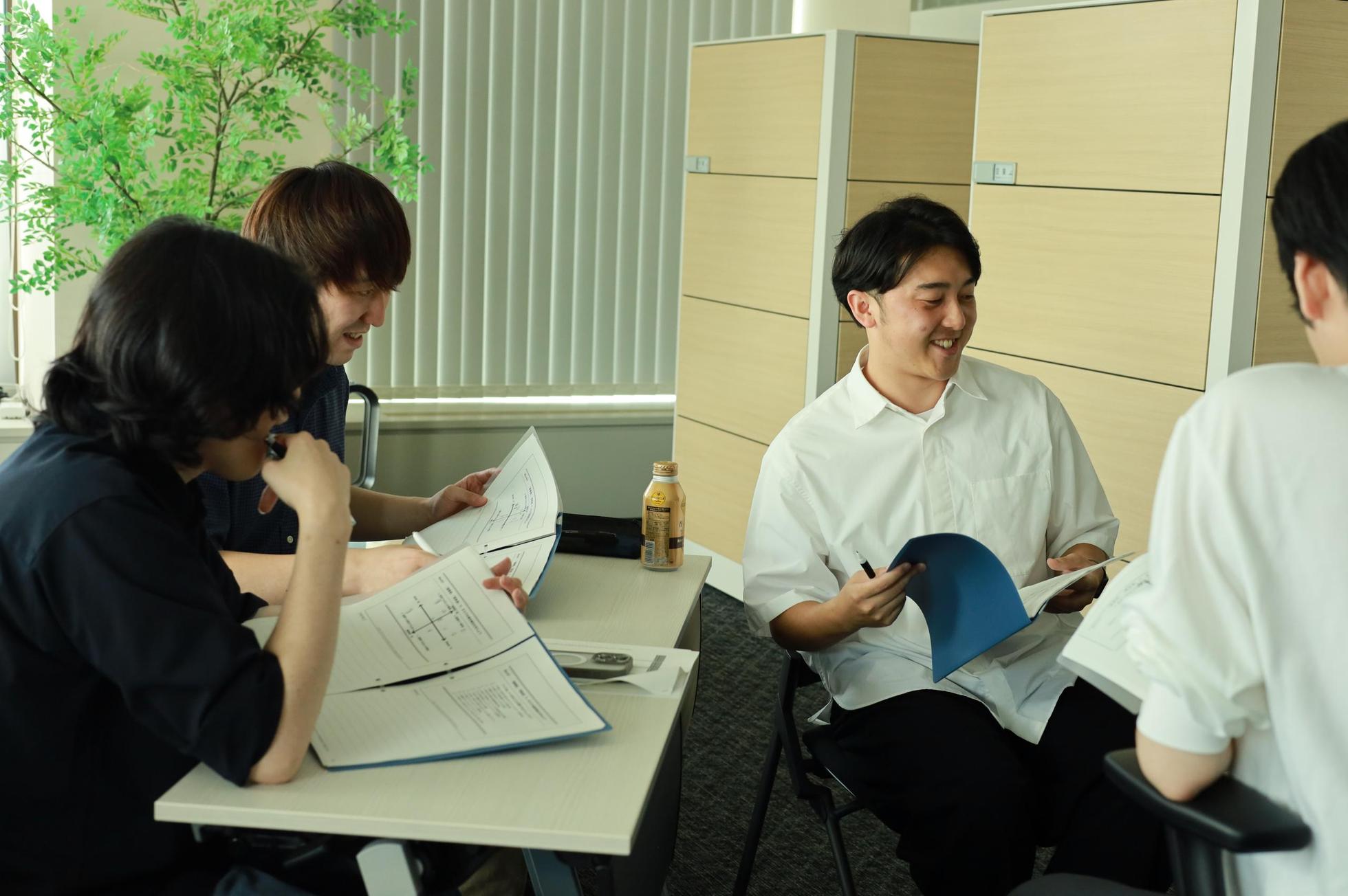 月一の部会が始まる前の雑談中。部会ではメンバーの進捗や不安点がないか上長がこまめに確認し、安心のフォロー体制です◎