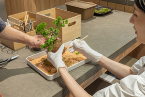 取材先での盆栽作り体験の様子。実際にやってみることで、深みのある主観を得ることが出来ます。