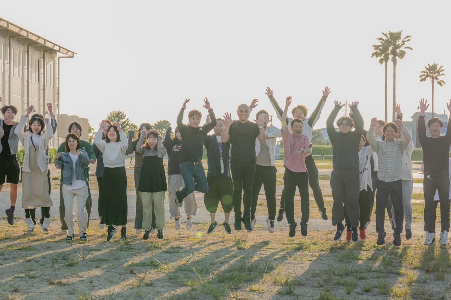 忘年会での集合写真。エフカフェと個人のビジョンに向かって突き進む熱いメンバーが集まっています。