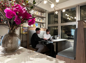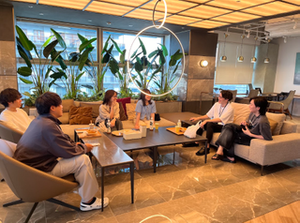ランチタイムにソファ席で談笑するメンバーをパシャリ!