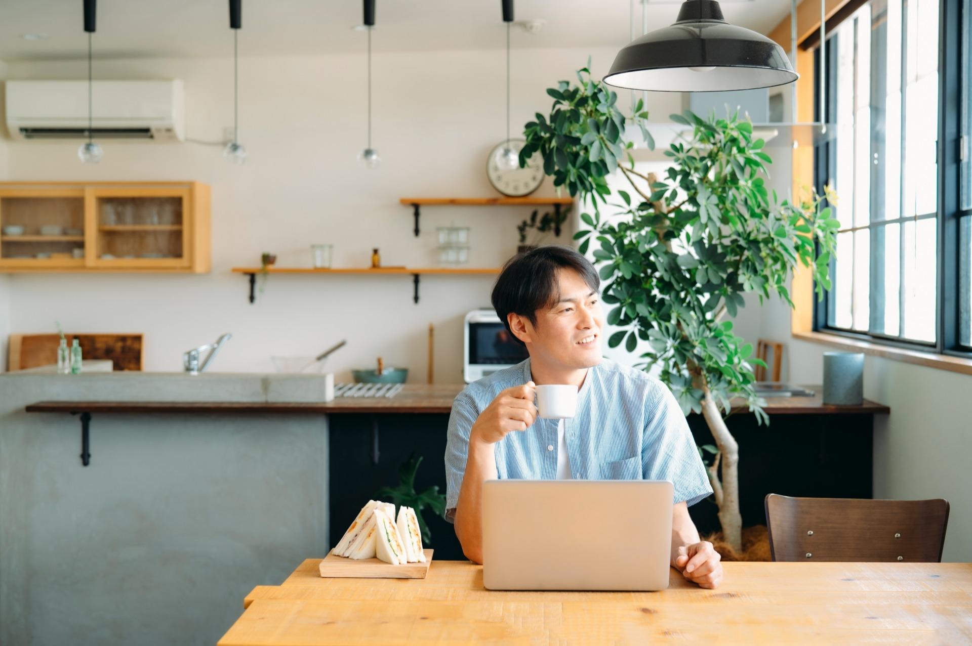 打ち合わせ中。HOMEがテーマの本社はリラックス感があるので、和やかな雰囲気で話し合いが進みます。