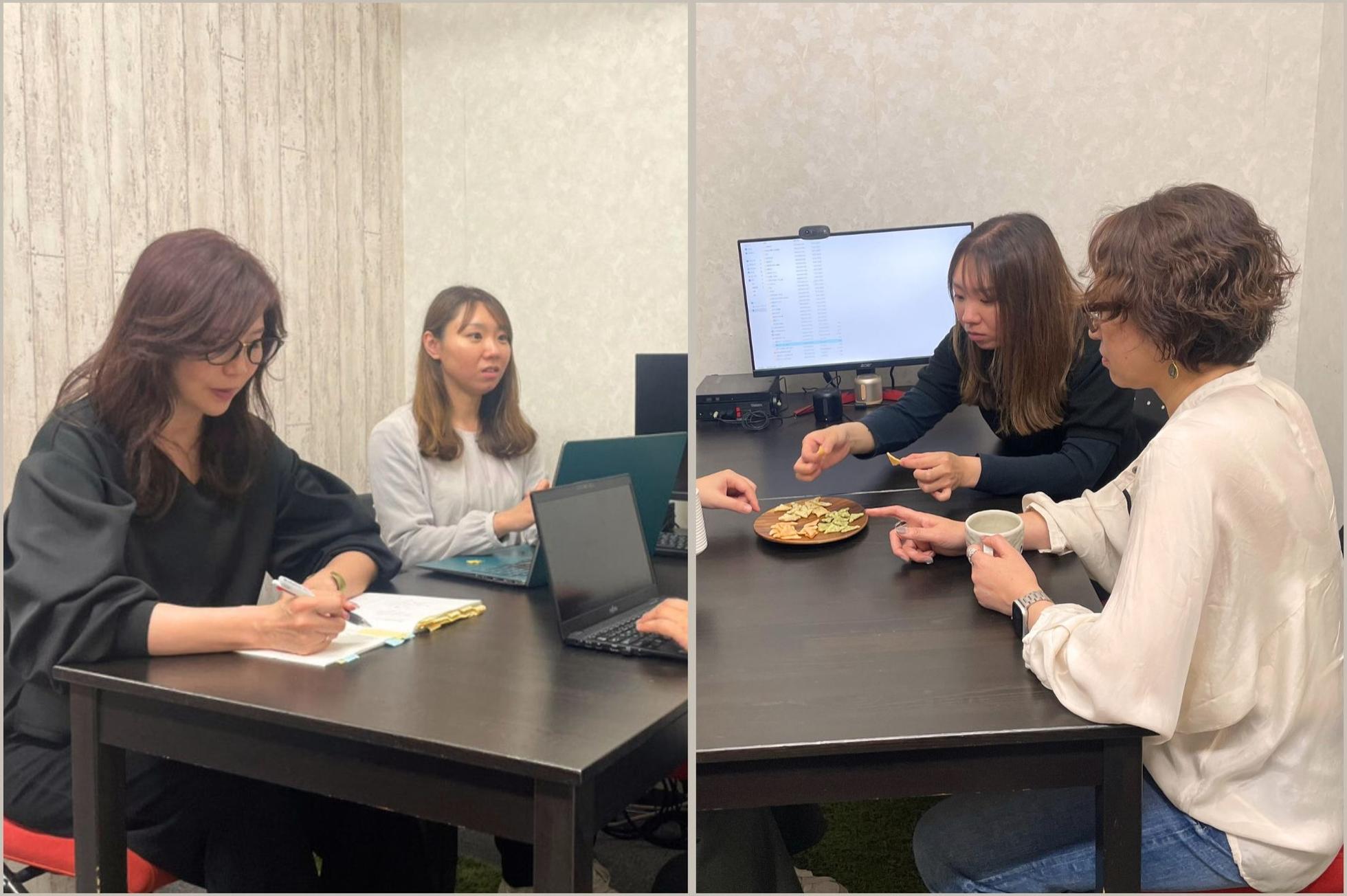 ロスゼロのアップサイクルブランド「Re:YOU」についてのミーティングの様子。社員、アルバイト関係なく、みんなが意見を言い合える風通しの良い社風です。