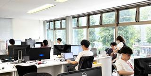 エンジニア~管理部までワンフロアで稼働。フラットにコミュニケーションが取りやすい仕組みになっています。