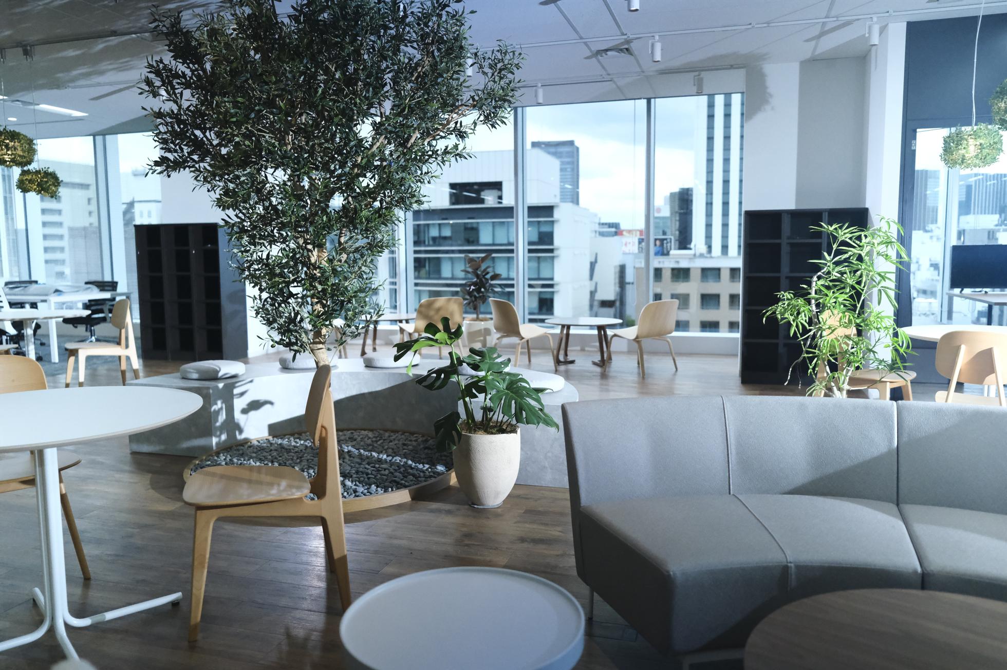 オフィスはフリーアドレス制。新しい働き方に対応し、本人の希望によりいつでも在宅勤務が可能になっています。