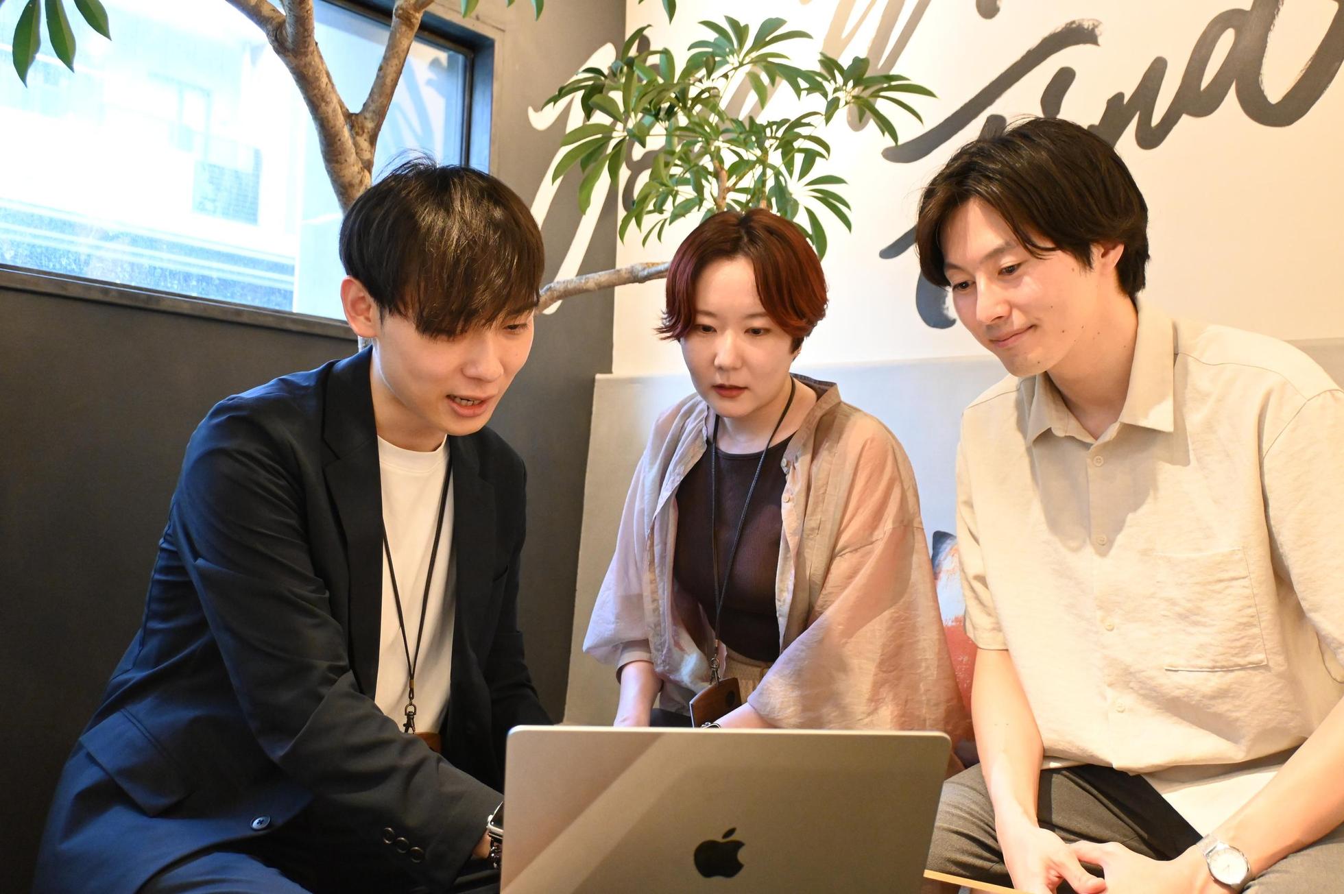 社長(真ん中)は社長と呼ばれることが苦手なのでメンバーはみんな「丹治さん」呼び。フラットな関係性が好み。組織もフラットでありたい!
