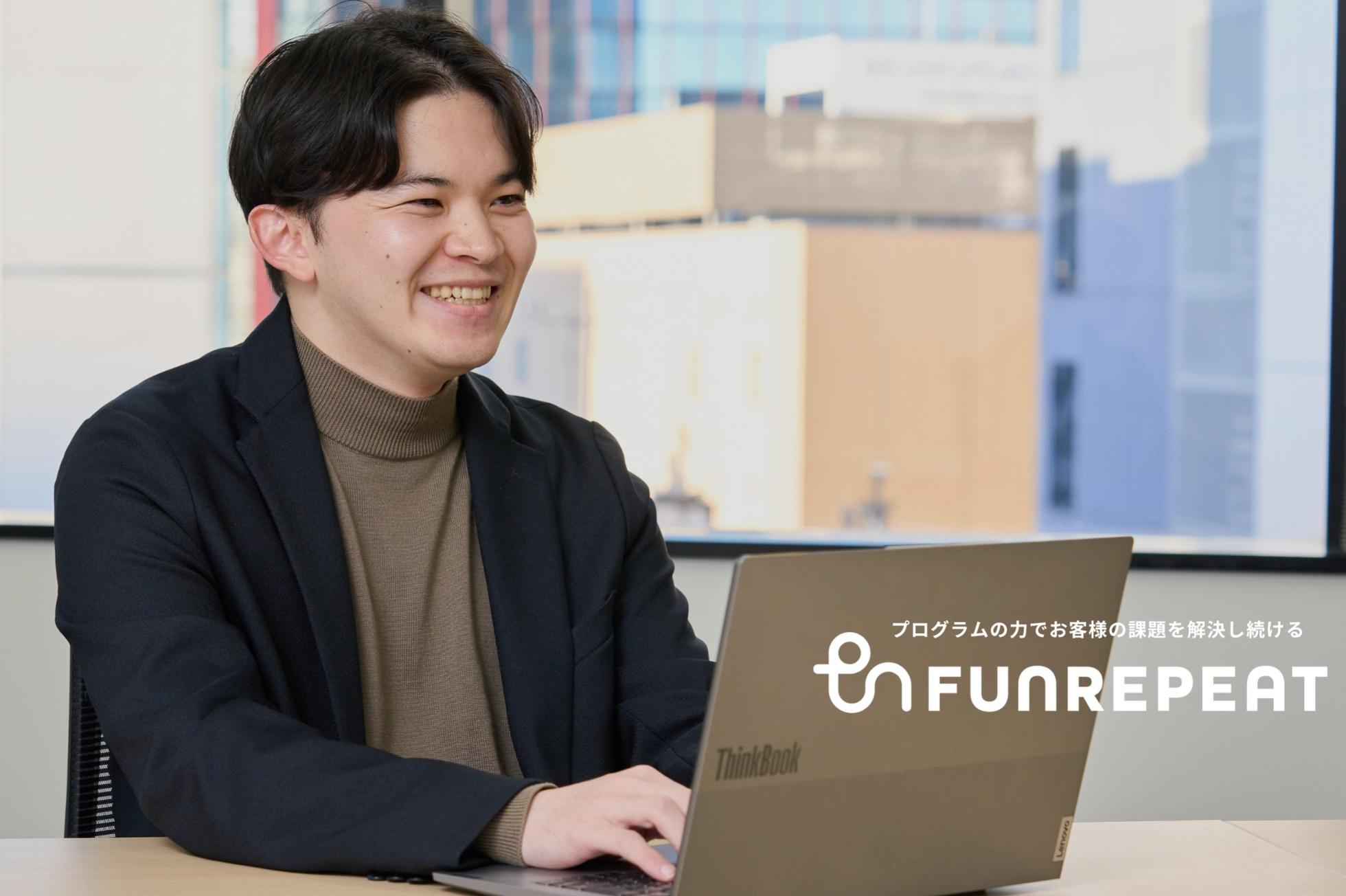 1997年生まれ / 北海道出身 ABOUT / 概要 ¨¨¨¨¨¨¨¨¨¨¨¨¨¨¨¨¨¨¨¨¨¨¨¨¨¨¨¨¨¨¨¨¨¨¨ 通信業界で個人・法人営業の両方を経験。 個人営業では16店舗中1位/年の実績貢献、法人営業では12人在籍している営業部門の中で1位/年の実績を獲得しました。 営業活動を通じて、「モノでなく顧客の業務課題をソフトウェアで解決することに対する魅力を感じたこと」や 「営業ではなく、より顧客に寄り添い伴走できる仕事がしたい」という思い、「AIの台頭もあり自分でもシステムを作れるのでは?」という思いなどからエンジニアの学習を始め、ファンリピートに入社しました。 現在は、エンジニア業務だけでなく、プロジェクトマネジメント領域や、これまでの営業経験を活かした顧客折衝、顧客の内製化支援や、AI導入レクチャーなどのコンサルティング的な業務も行っています。 どうすれば顧客と中長期的に関わっていけるのか、そのために何が出来るのかを考え、エンジニアの領域からコンサルティング領域を含め、プロダクトマネージャーのようになれることを目指して業務に取り組んでいます。