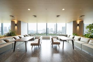 【東京オフィス】汐留の東京湾と浜離宮が望めるロケーション抜群のオフィス。コミュニケーションを目的とした週1の出社と在宅のハイブリッドワークが可能です。個別スペースがいくつもありますので出社と在宅のバランスがとれるよう、たまには顔を合わせて仕事ができるような工夫がされています。