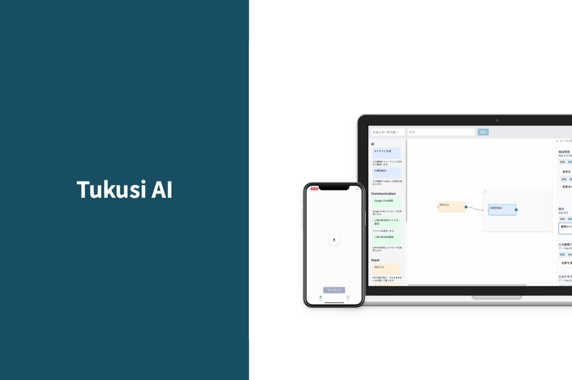 主力プロダクトは、AI Native医療情報処理統合プラットフォーム「Tukusi AI」です。在宅医療やプライマリケア領域に特化し、AIの活用を前提とした、情報処理の流れをデザインします。