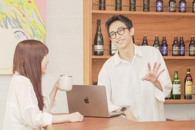 シンプル環境の執務室、yogiboやバースペースなど、どこでも好きな場所で作業。