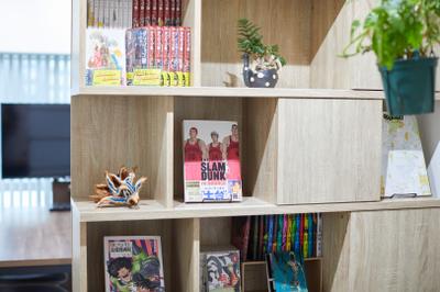 休憩スペース&本棚。本棚には従業員の推し漫画が並んでいます。