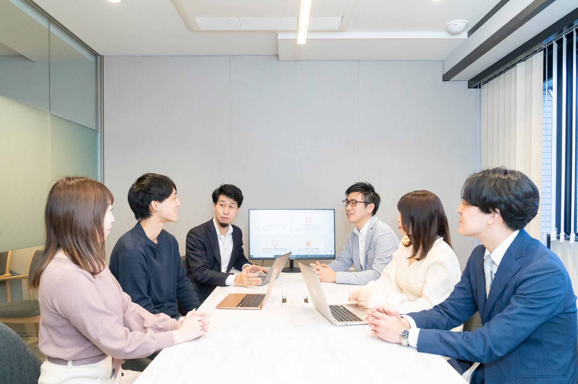 よくメンバーが一緒に集まり、情報共有や相談をしています。未経験で入社したエンジニアも多く在籍しており、チーム一丸となって成長できる環境があります!
