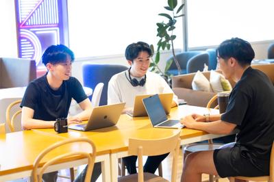 オフィスはフリーアドレス制を採用しています。チーム間の連携が重要なビジネスモデルのため、社員がコミュニケーションを取りやすい環境の整備も重要視しています。