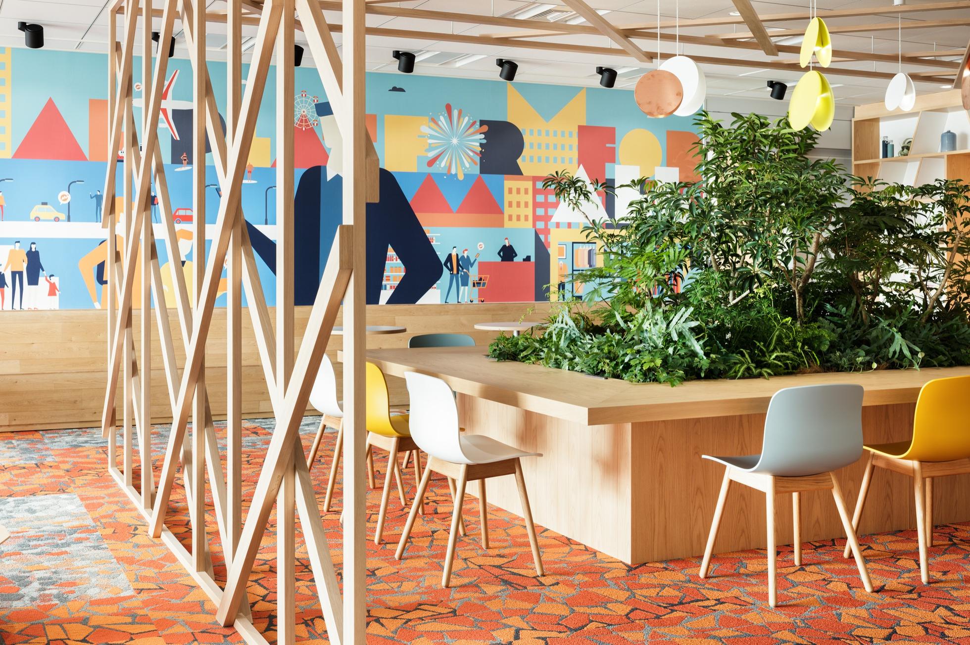 社員の憩いの場、リフレッシュルーム。写真では伝わりにくいですが100名規模のイベントができるゆったりとしたスペースで社員が休憩したり談笑しています。