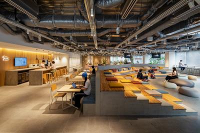 ちょっとしたミーティングや自席から気分を変えて作業をするときなどに使えるスペース、通称"ファミレス席"。