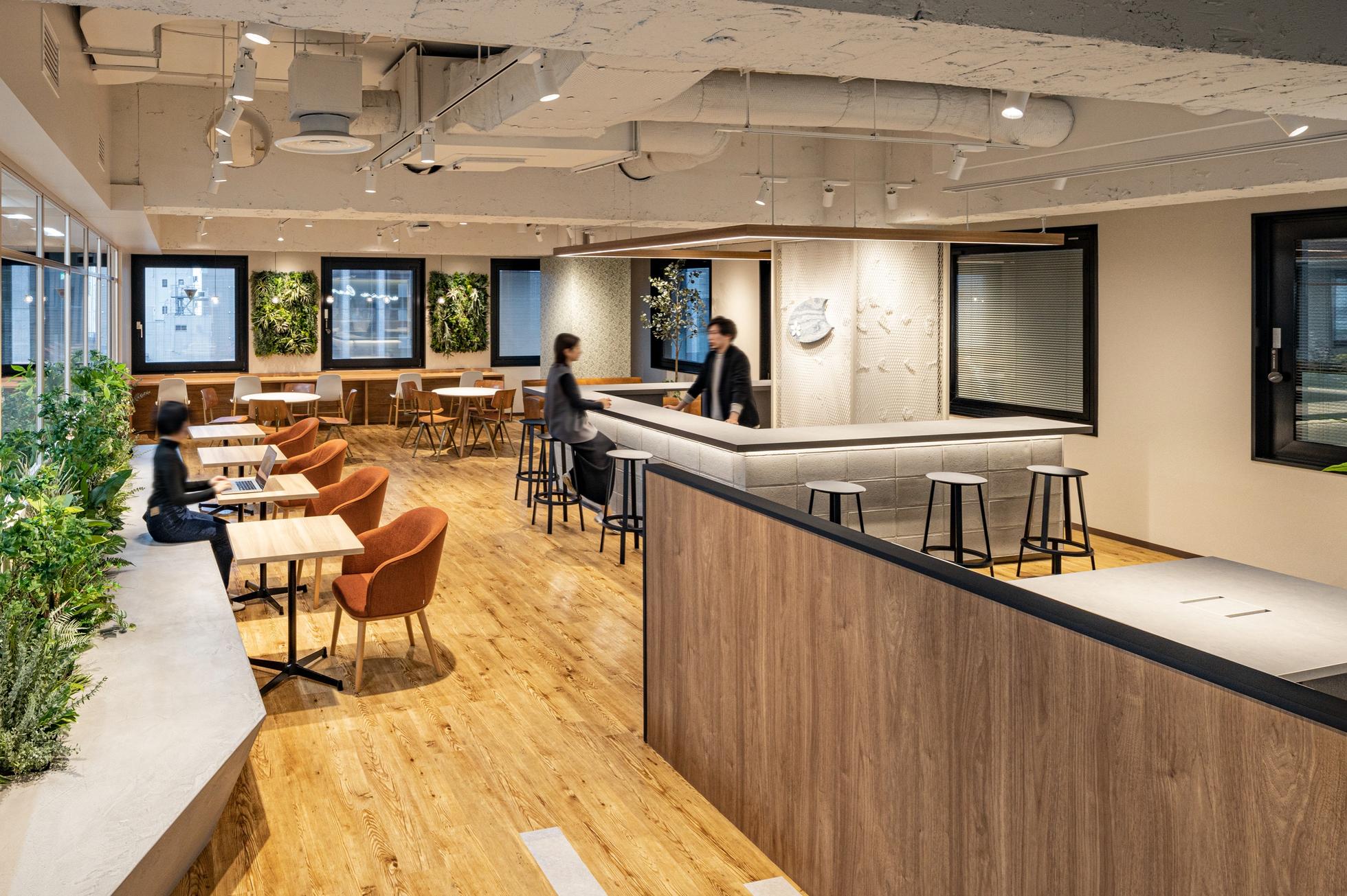 グリーン溢れるオフィスには心地よいBGMが流れています。コミュニケーションのとりやすい環境でチームワーク力を育むことを大切にしています。