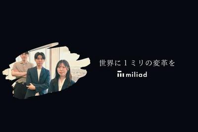 ■働くうえで大切にしていること 自ら考えて行動することを大切にしています。 インターネットでの検索は便利ですが、自分の頭で考え、失敗を恐れずに行動することが重要です。 弊社は失敗を許容する文化が根付いているので、失敗を責めたりしません。 失敗を通して進化していってくれることの方が重要だと考えています。 ■ミリアドメンバーの特徴 向上心が高く素直なメンバーが多いです。 0→1が得意な人、1→100が得意な人、縁の下の力持ちなどタイプは様々ですが各々が自分の業務にプライドを持って取り組んでいます。 行動力を活かして新しく部署を作ってしまったメンバーもいます!笑 ■働きやすい環境をつくる ミリアドではメンバーが働きやすい環境を整備しています。 福利厚生はなんと30種類! 社内情報の透明性を確保し、意見を尊重し合いながら働く文化を築いています。 ■フラットな距離感 国内外で様々なバックグラウンドを持った22名のメンバーが活躍し、役職や社歴に関係なくフラットな距離感で協力し合っています。 ■実績重視の会社 成果を上げた社員を評価。営業職で入社1年でリーダーに抜擢されるなど、実績とやる気が評価される環境です。 仕事にスピード違反は無い、自己成長したい人は全力で応援、そんな会社です。 ■起業を目指す社員もいます 将来起業を目指す社員を支援。経営塾、セミナー、書籍代を支給し、夢を持ち努力する社員を応援しています。 ■VALUE「F5」 ミリアドでは行動指標として5つのF(F5)を掲げています。社員一人一人がこの指標に沿った行動を心がけ、新しい提案や模範的な行動に対してF5スタンプを押して褒め合っています。 ■当社で活躍している社員のストーリー記事を読んでみませんか? 「変化することは楽しい」入社1年でトップセールスを達成、リーダーへ抜擢された成功の秘訣とは https://www.wantedly.com/companies/company_2069858/post_articles/884501