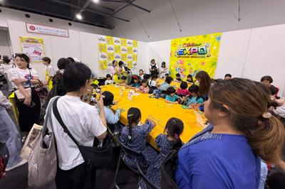 2025年10月で閉幕した大阪万博内にて開催された弊社コンテンツ【ごっこランドEXPO】の様子。スペシャル企画として4社の後援を受けのべ2日間で2000組の親子へ体験を提供しました。