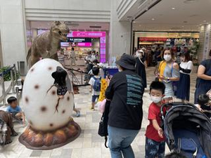 弊社人気の恐竜催事。タマゴのフォトスポットなどを使ってこどもの好奇心を誘います。