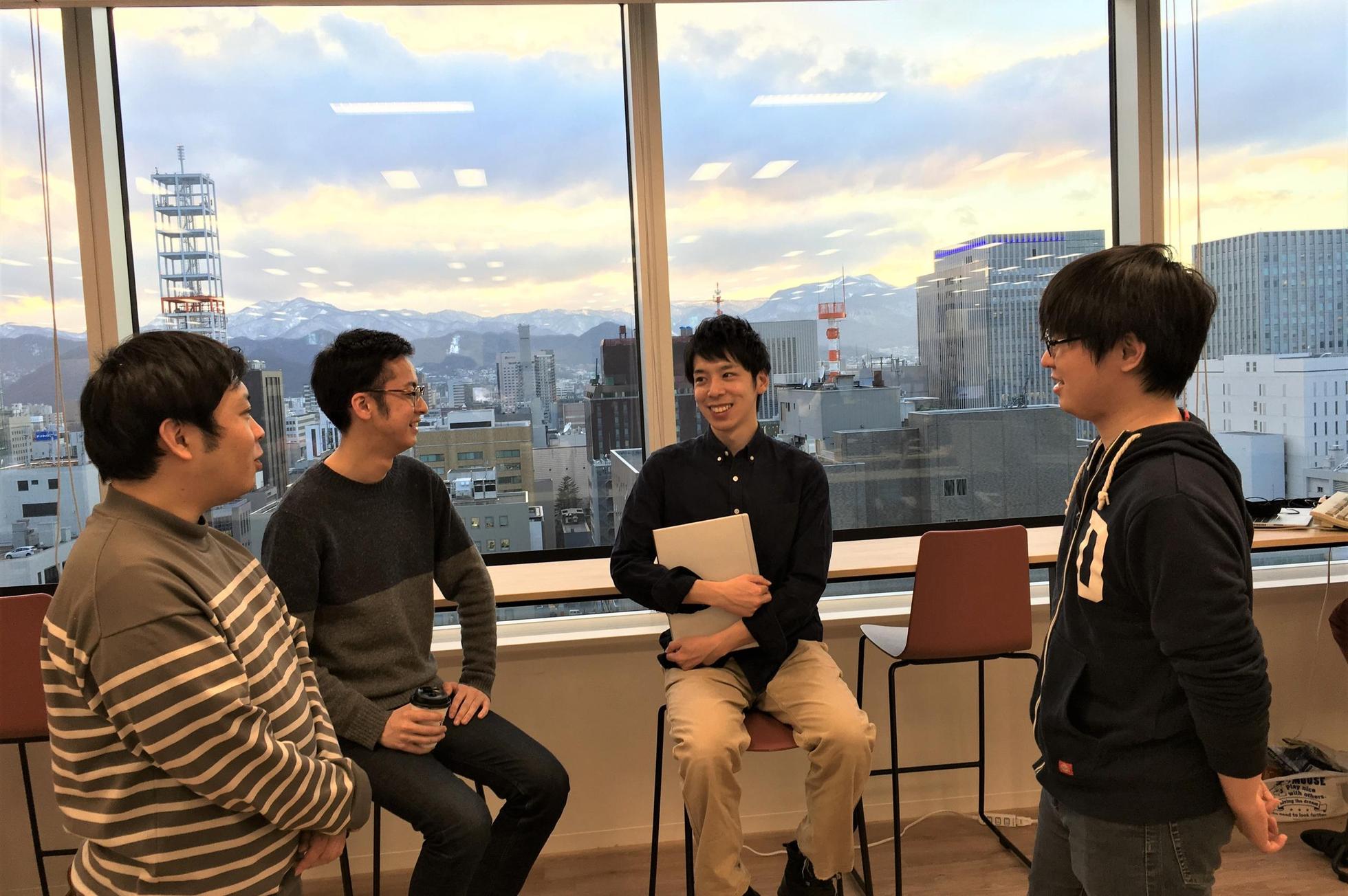 エントランスからと打ち合わせスペース。大きな窓から札幌の街並みが見えます。