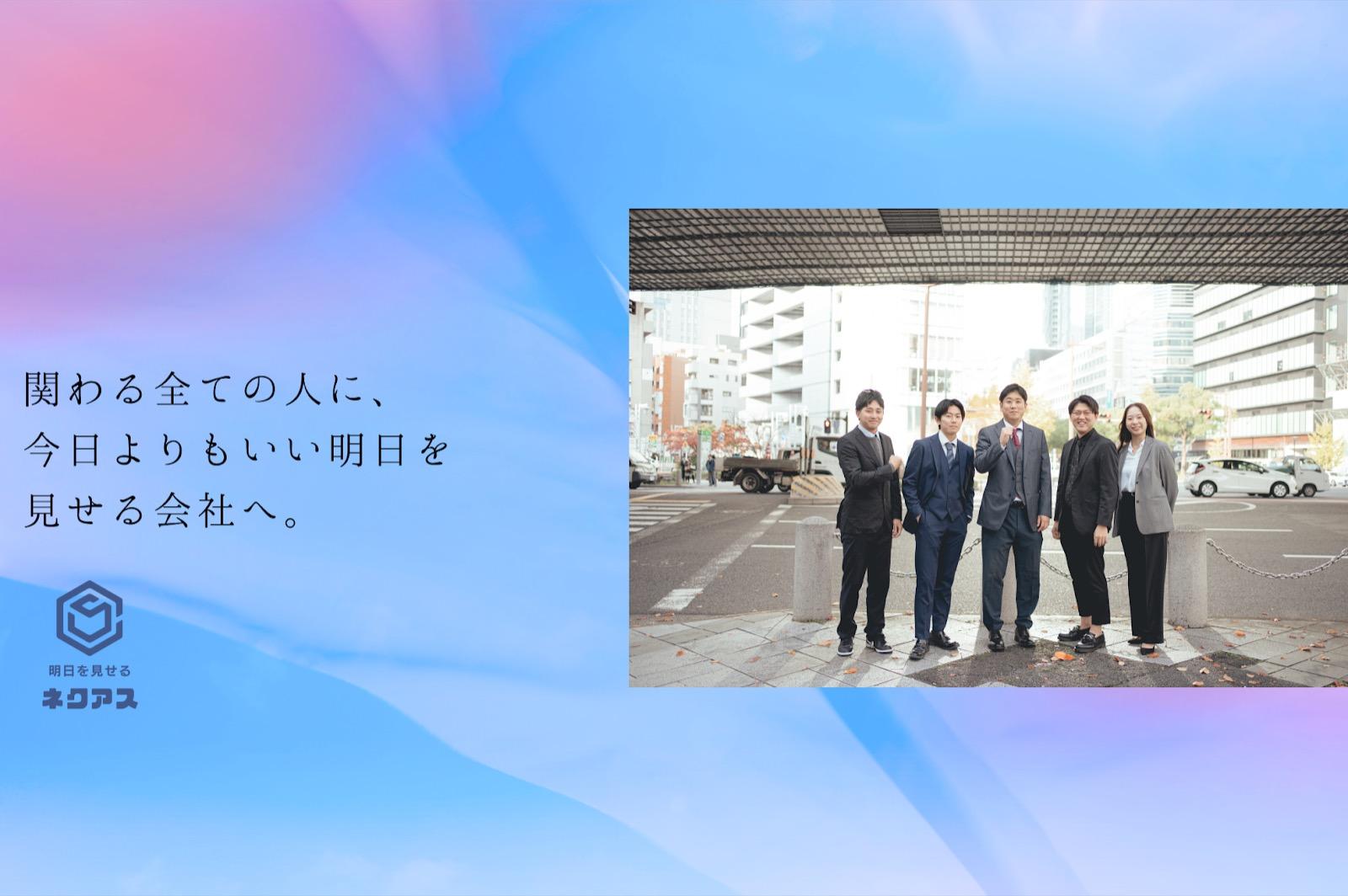 ◤目の前の人に、マジで向き合う。◢ 株式会社ネクアスは、営業コンサルティングやセールスプロモーション、営業代行を通じて、新しい価値を世の中に提供するベンチャー企業です。 拠点は愛知県で、理念経営への転換を機に、社員数は1年で5名から20名以上に急成長しました。営業未経験者も多数活躍しており、大手航空会社や会計事務所出身者など、多様なバックグラウンドを持つ仲間が集まっています。 そんな私たちは、冒頭にも書いた通り「目の前の人に、マジで向き合う。」というMISSION(世の中への存在意義)を定めています。(詳細は「なぜやるのか」にて記述。)なぜこのMISSIONを掲げているのかについては、私たちのVISION(目指すべき方向性)と深く関わっています。 ◤提供するサービス◢ 1. SP事業(Sales Promotion) – リアルな営業力で市場を拓く 通信機器や光回線の販売を軸に、ショッピングモール等の催事イベントでお客様に直接アプローチし、ライフスタイルに寄り添った最適な提案を行います。 2. TM事業(Telemarketing) – 電話で顧客の課題を解決 法人・個人を問わず、電話を通じてコスト削減や最適な契約への切り替えをサポートします。単なるセールスではなく、お客様のメリットを最優先に考えた課題解決型の営業を実践しています。 3. DX事業(Digital Transformation) – デジタル活用を支援 携帯キャリアと連携し、スマートフォンの初期設定やデータ移行、活用講座などを通じて、お客様のデジタル化をサポートし、「次の明日」をより良いものにします。 4. HR事業(Human Resources) – 企業の「人」の課題を解決 採用戦略の設計から評価制度の導入まで、中小企業の成長を支える仕組みを提供し、最適な人材と企業をつなぎます。 ◤ネクアスの成長と強み◢ 設立から間もないベンチャー企業ですが、理念を刷新したことで組織は大きく変わり、1年間で売上は2,000万円から1億円へ、利益率は3倍以上に向上しました。 • MISSION:「目の前の人に、マジで向き合う。」 – かつて売上だけを追い、疲弊した経験から、相手の立場や気持ちを想像し、本気で応える姿勢を何よりも大切にしています。信頼、配慮、感謝、誠実、嬉しさという「5つのマインド」を土台としています。 • 挑戦を歓迎する文化 – 社名の「ネクアス」は「Next Tomorrow=次の明日」に由来し、「現状維持」ではなく「変化と挑戦」を選ぶ文化が根付いています。CEOやCOO自身の挫折と再起の経験から、「人生はやり直せる」という強い想いがあります。 • 多様なメンバーが主役 – 高校留年やホームレスを経験したCOO、大手航空会社から事業部長へ転身した社員、会計事務所から営業未経験で課長になった社員など、多彩な経歴を持つ仲間がそれぞれの強みを活かして輝いています。 このように、過去の経験を問わず、挑戦意欲を持つ人が輝ける環境がネクアスの強みです。 ▼ネクアスのメンバーについて知りたいなら インタビュー記事一覧 >>https://www.wantedly.com/companies/company_5253313/stories ▼ネクアスの経営理念(MVV)について知りたいなら 「“売上”だけじゃ、心は動かない。」──経営理念を刷新し、“向き合う力”を取り戻した会社の話。 >>https://www.wantedly.com/companies/company_5253313/post_articles/964764 ▼ネクアスの事業内容について知りたいなら >>https://nex-as.com/service ▼ネクアスの福利厚生について知りたいなら >>https://nex-as.com/recruit