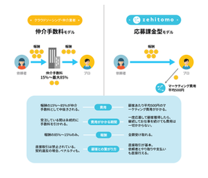 Zehitomoが一般的なクラウドソーシング、仲介業者と異なるのは「応募課金型モデル」で仲介手数料を一切いただかない点です。