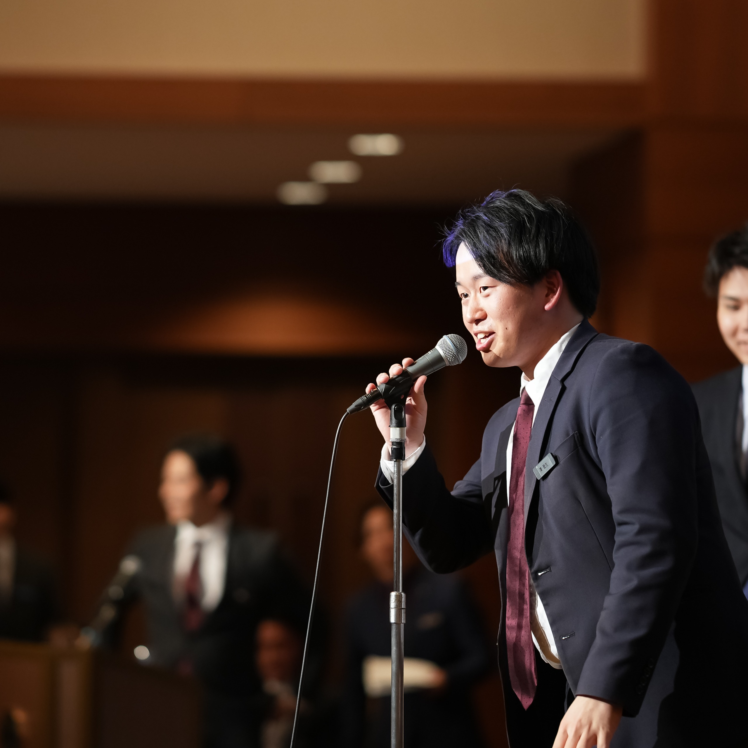 2024年度全社総会での表彰式の写真です。成果を上げた社員を称える場です!