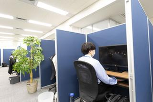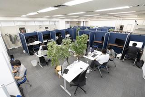 千葉本社の様子です。たくさんの社員に気持ちよく作業してもらうために、広いオフィスを構えております。