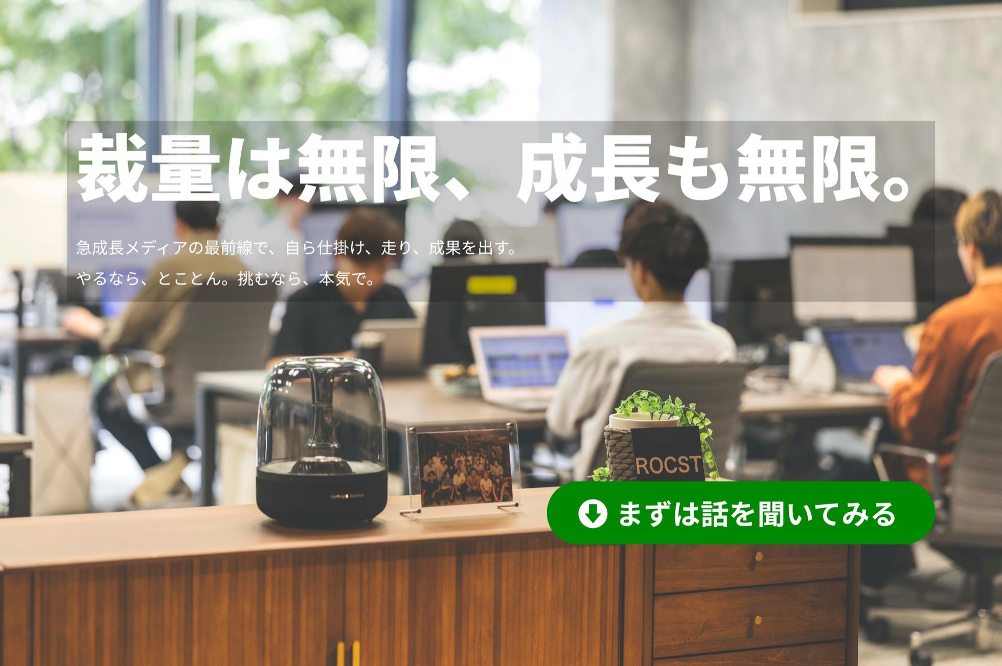 ◆自由度と裁量は、最大限に。 自分がやりたいことを、やりたいようにやる。指示は最小限に、あとは一人ひとりが考えて動けばいい。そんな風土が根付いた会社です。意見や情報の交換・共有を気軽にできるようにすることで、「自分が何をすればいいか、どう動くべきか」も自然と明確になります。それぞれが得意分野を専門性へと磨き上げ、シナジーを生むことで、社員自身も会社も成長しています。 ◆ワークスタイルも柔軟に。 時間や場所を越えるWebの世界。だからこそ、ロックスタの働き方もそれに沿っています。例えば、1日8時間のフレックスタイム制を採用し、働き方の自由度を高めました。朝早くから動くことが得意なメンバーは、16:00に一足早く仕事を終えます。逆にゆったり動き出したいというメンバーなら、お昼近くの11:00に出社してきます。また、週3回は完全なリモートワークも利用できるようにしています。自分に合ったワークスタイルを選べることで、パフォーマンスとモチベーションを大きく高める環境をつくりあげました。 詳しくは下記のURLをご覧ください! https://www.wantedly.com/companies/top6/post_articles/407335 他にも… ・働く場所も選べる『リモートワーク制度』 ・リモートでも社員と繋がれる『バーチャルオフィス』 など、パフォーマンスの最大化を図る制度があります。 ◆行動指針を社名に。 実はROCSTという社名は、行動指針を示す単語の頭文字から名付けられています。 R(Recruit) : 志を持つ仲間が集まる会社を O(Ownership) : すべての問題解決をあなたから C(Challenge) : 失敗をおそれずチャレンジを S(Speed) : より速く、より効率的なものを T(Team First) : チームで勝ちにいく 一人ひとりの成長のために大切な、これらの姿勢。常に頭に思い浮かべられるように、社名にも採用しました。