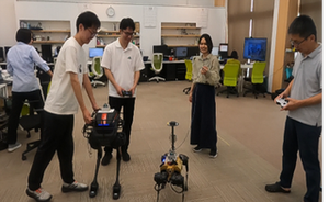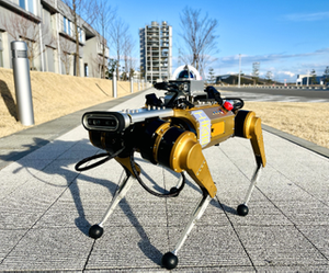 多脚ロボット、自社開発4脚ロボットの実証実験の様子