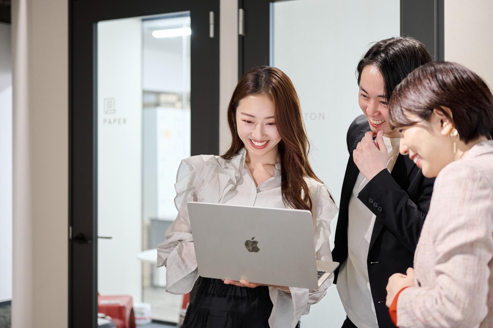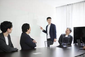 若手メンバーも積極的に意見を出し合い、新規事業のグロース戦略を策定中。