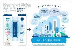 モビリティ・サービス、スマートべニューという事業を通じ、物理的な社会(フィジカル)とインターネット上の仮想空間(デジタル)が融合した仕組みを、街の中に導入していき(スマートシティ化)、歴史に残る社会システムの創造を目指しています。