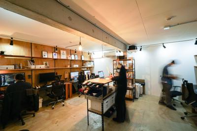 1Fはミーティングや休憩などを行う多目的スペース。イベントや展示などを行うレンタルスペースとしても活用しています。