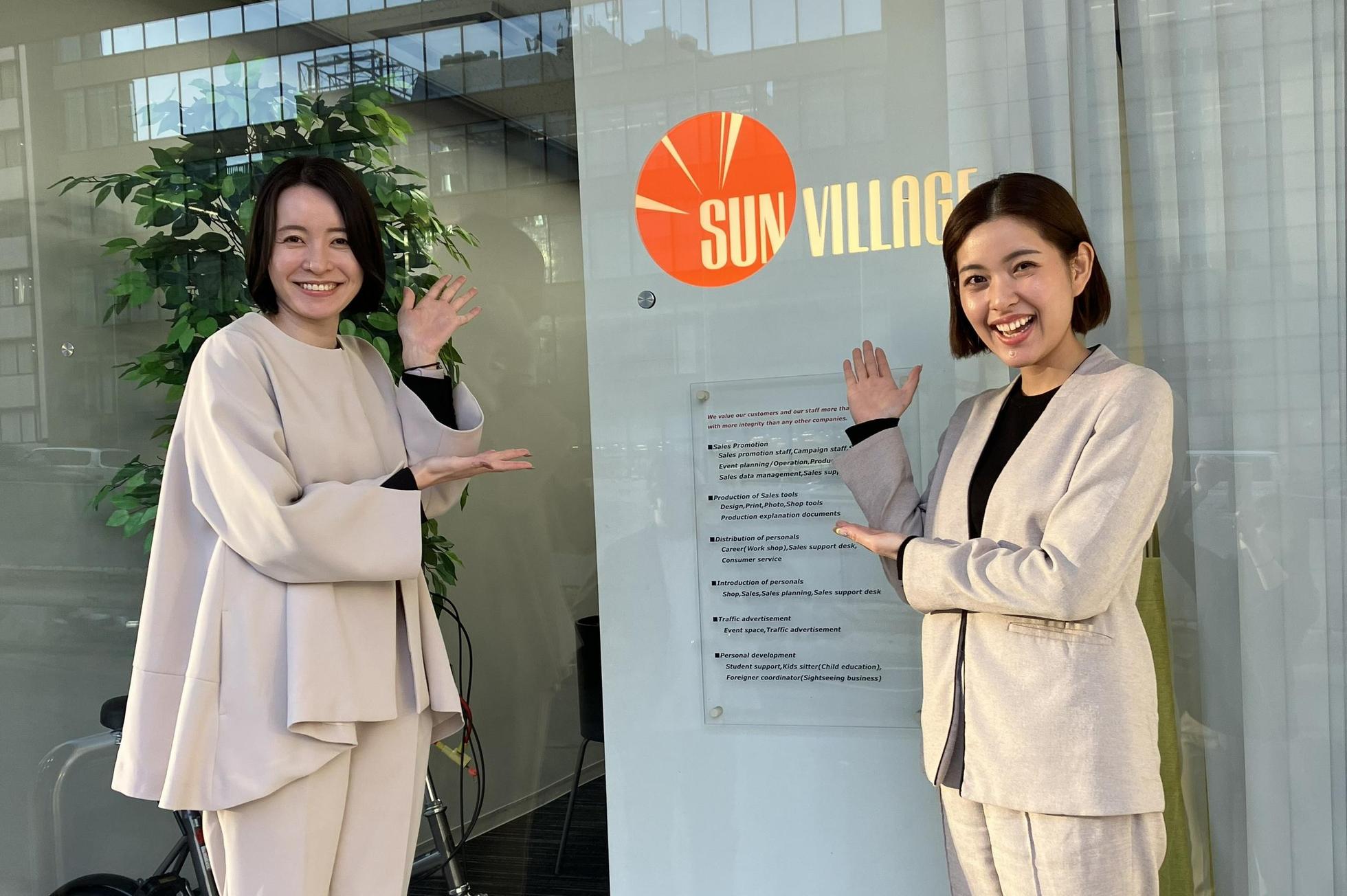 私たち株式会社サンビレッジは、販売促進・営業支援を手掛けるセールスプロモーション会社です。セールスツールの企画・制作から、トータルパッケージによるアウトソーシングまで、一貫したサービスを提供しています。 ■事業内容■ 営業・販売部門のアウトソーシングを主軸に、人材派遣の枠を超えた「人材プロモーション会社」として事業を展開してきました。単なる人材の派遣にとどまらず、セールスツールの企画・提供やトータルパッケージでのアウトソーシングにこだわりをもっています。 ■これまでの実績■ パナソニックのノートパソコン「レッツノート」のカスタマイズモデルを扱う、全国6店舗のリアルストア運営を任されています。また、フィリップスの電動歯ブラシ・シェーバー部門においては、販売スタッフの管理・研修に至るまでを全国規模でサポートしています。 ■今後の展望■ 全国規模での拠点拡大を目指しています。現在は東京(渋谷)・茨城・名古屋・大阪に拠点を構えていますが、今後はもっと広範囲に進出する予定です。新たな拠点を着実に増やし、組織としての土台を固めてまいります。