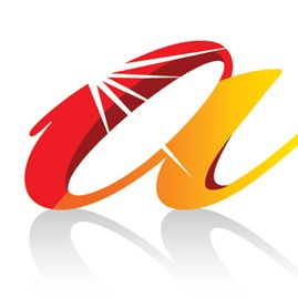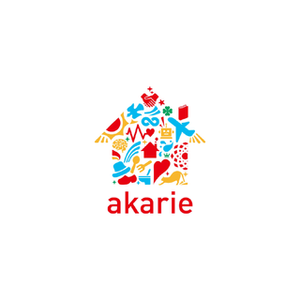 アカリエのロゴです。「アカリ」と「イエ」を合せたイメージです。
