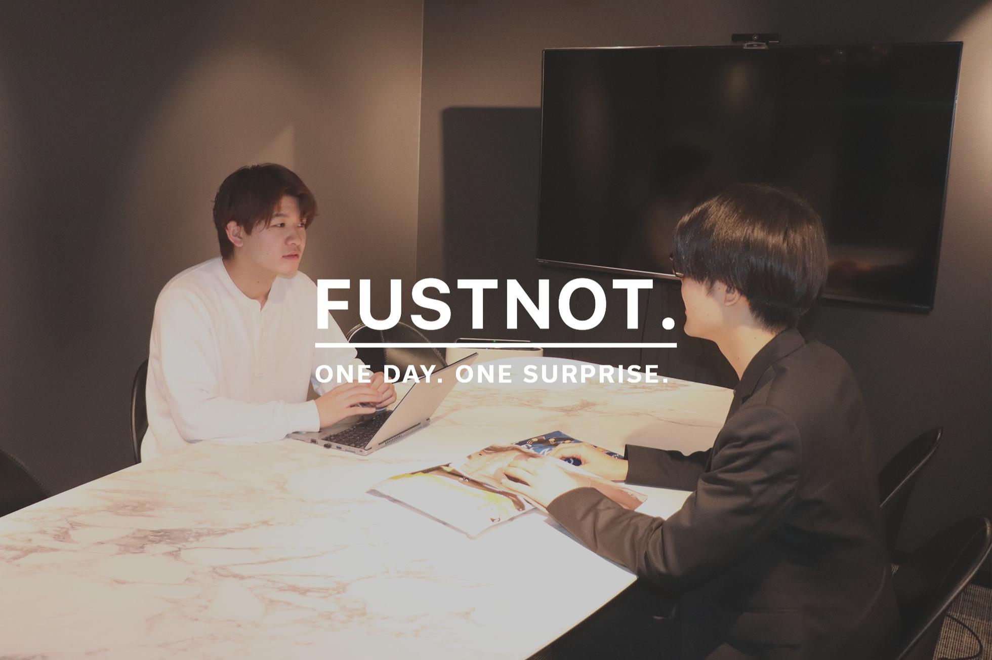 【 The future starts today, not tomorrow.  】  未来は今日始まる。 明日始まるのではない。 ヨハネ・パウロ2世が残した言葉です。 FUSTNOT.という社名の由来にもなります。 自分が社会人としても人としても成長するには、 「明日やろう」という考えを捨て、 今の自分が出来る最大のパフォーマンスを日々発揮する事が 成長への近道だと思っています。