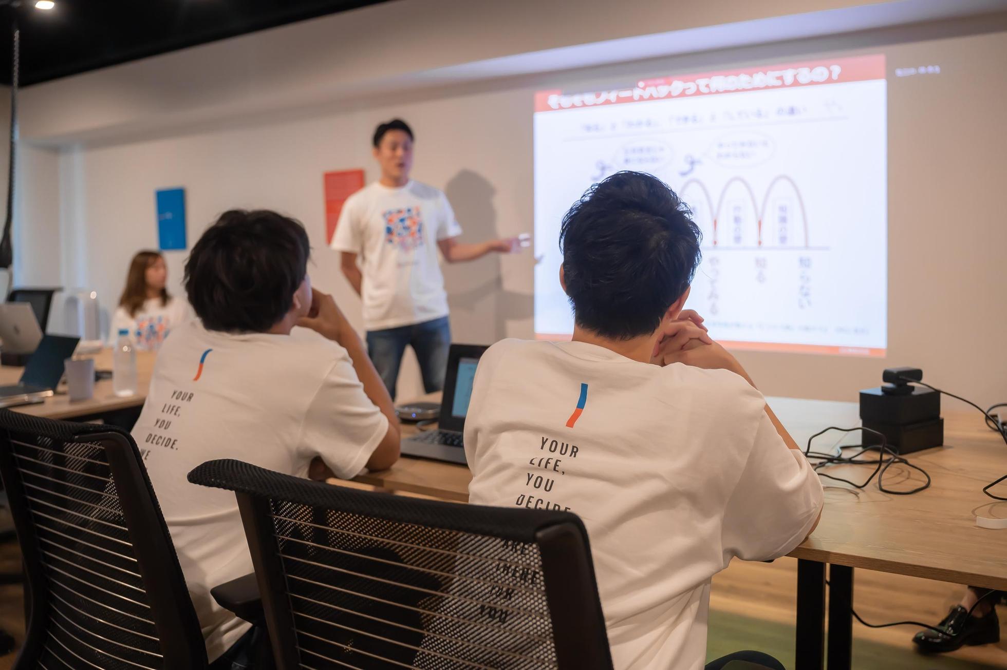 私たちの最終的なミッションは、「自分で自分の人生を決められる人を増やす」ことです。 人生を楽しめない大人が多い理由は、誰かに決められた人生を歩んでいるからではないか。 そもそも「楽しい」や「幸せ」とは自分自身が決めるもの。であれば、自分で決めた人生さえ歩めれば、その人は幸せなのではないか。 その思いから、私たちが「自分で自分の人生を決められる人」を増やすことで、日本の幸福度を上げ、みんながイキイキと働くことで結果的に日本の生産性も上がる。そんな世界を目指しています。 そのために中長期的には、教育事業をはじめ直接的に人々に価値を届け、影響を与えられるtoC事業をしていきたいと思っています。 とはいえ、当社はまだ創業5期目のベンチャーですので、今後の事業の多角化のために経営人材の育成、マーケティングノウハウの構築、投資資金の確保を目的に、 短期的には、得意領域でのtoB事業を行っています。 そして、最終的なミッションである「自分で自分の人生を決められる人を増やす」ためにも、まずは私たち自身、そして関わる全ての人が「自分で自分の人生を決める」、そんなチームでありたいと思っています。