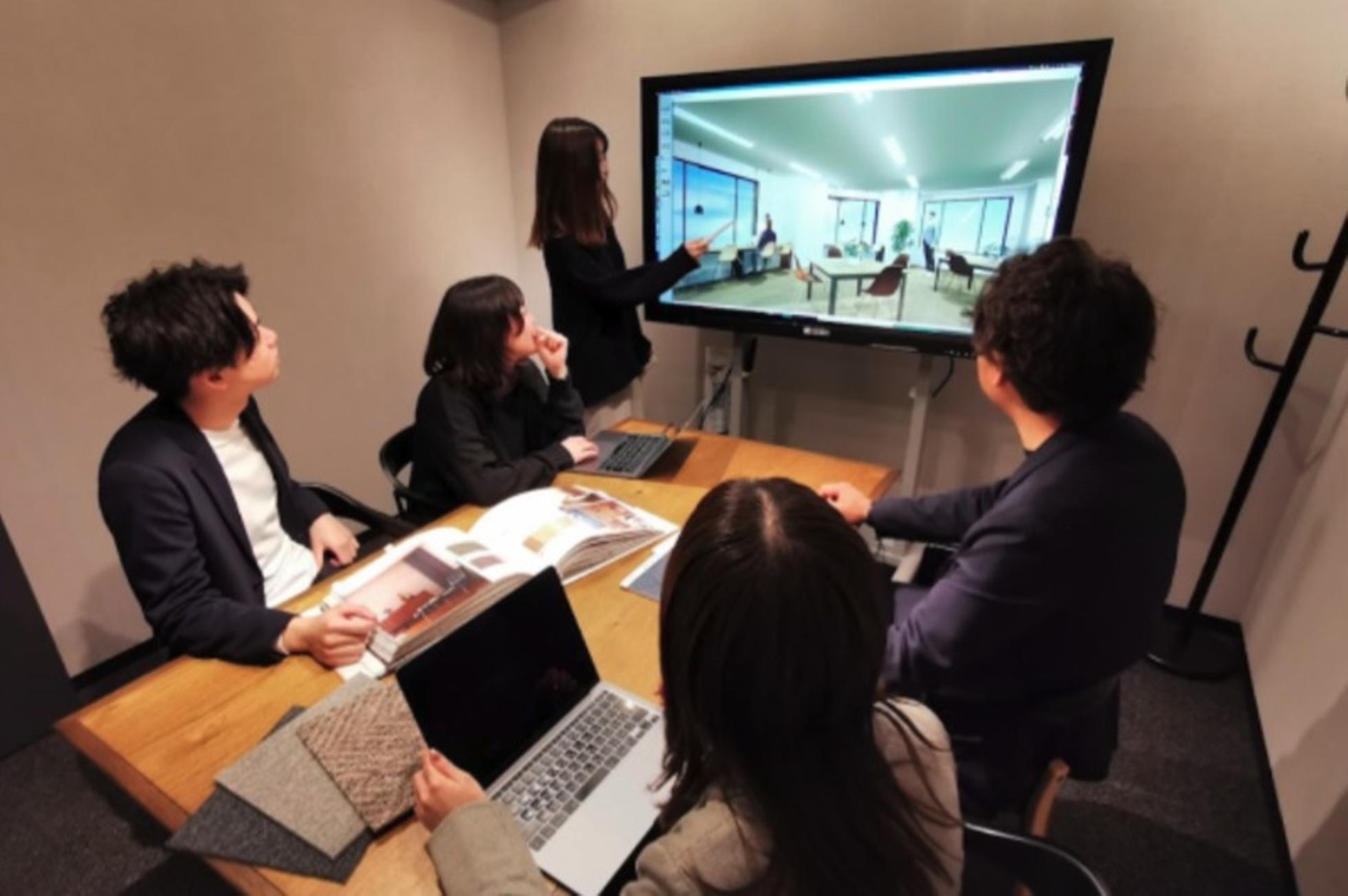社内MTG風景 | 社内のデザイナーと協力してプロジェクトを進めていきます。平均年齢は30代と若く、和気あいあいとした雰囲気です。