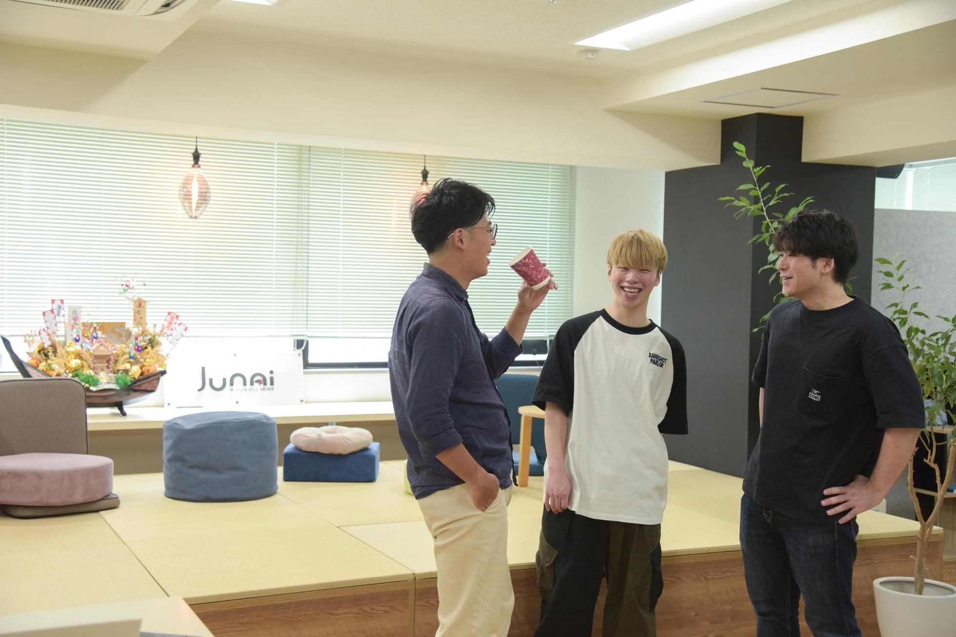 ジュニで活躍するメンバーは、 日々ユニークな発想で品質の高い もの/コトづくり を行っています。 その挑戦を続けるために、ジュニは、メンバー個人が好奇心をもって遊ぶように学び、日々成長できる環境でありたいと思っています。 ・働き方 ジュニでは、個人プレイではなく、チームプレイでものづくりを行っています。そのため、なるべく対面でのリアルなコミュニケーションを大事にしています。出社がメインのフレックスタイム制を導入していますが、家族や個人の都合に合わせて、その時々でリモートワークも組み合わせて働くことができます。 ・国内外のアワードへの挑戦 国内外のアワードに挑戦できます。これまでも『awwwards』『FWA』『CSS Design Awards』に挑戦し、SITE OF THE DAYなどの数々の受賞実績があります。新しい技術や斬新なデザインなど新しいクリエイティブへの挑戦に必要な環境を用意することが可能です。 ・メンバーそれぞれの挑戦を応援 ジュニでは、メンバー各自の挑戦と成長を応援しています。 挑戦してみたい案件や技術があっても、機会がない場合は、仕事を生み出してアサインすることがあります。他にも、自社サービスや事業のアイデアがメンバー個人の発信からはじまり、事業化することもあります。やってみたいこと、挑戦したいことを発信することで実現のチャンスがあります。 ・働く環境 メンバーの交流・コミュニケーションのしやすさを重視したワンフロアのオフィスは休憩エリアも充実しています。また昼食一部補助やオフィスコンビニ等福利厚生も整っています。